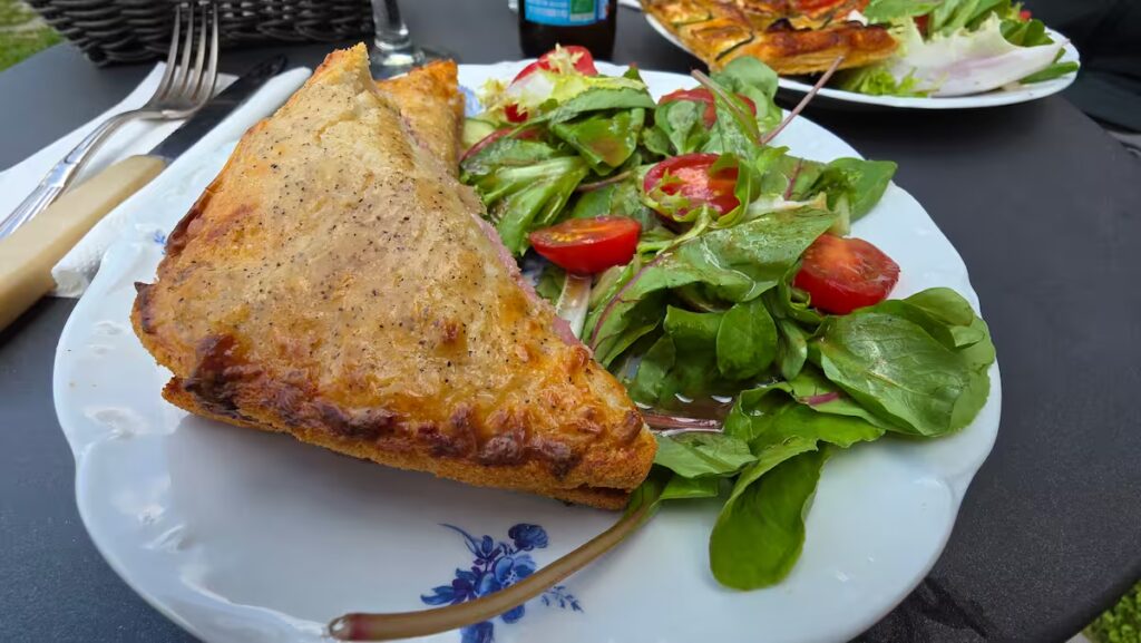 The magic continues on the plate. Perlépampille proudly offers a homemade, seasonal menu, carefully crafted and full of flavor. During our visit, we started with a classic yet delicious hard-boiled egg served with homemade mayonnaise — creamy, delicately tangy, and nostalgic in the best way. The main course was a golden, crispy croque with ham, soft on the inside and beautifully toasted on the outside, served with a selection of savory mini tarts that added a lovely, delicate balance to the dish.