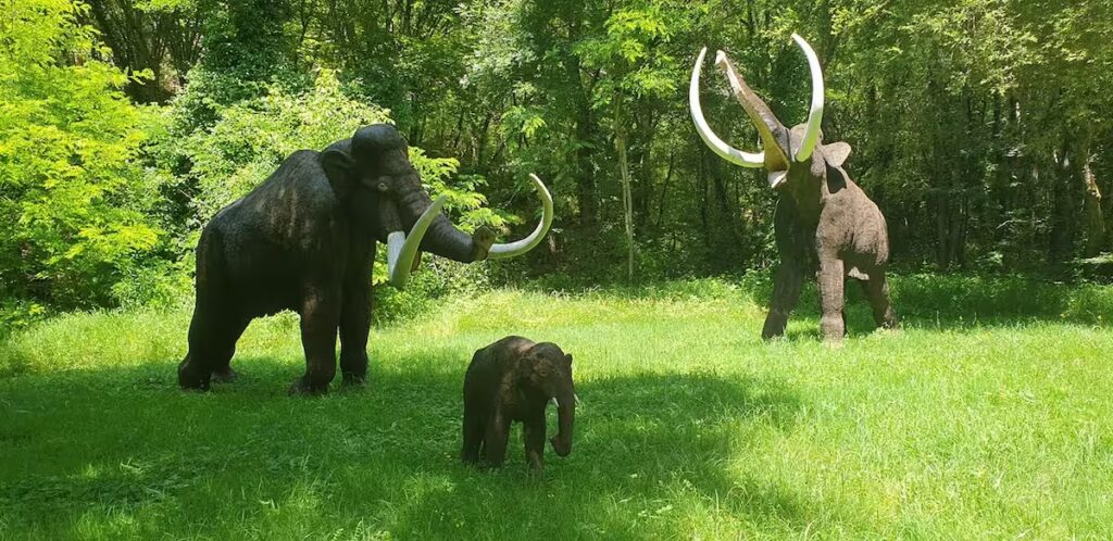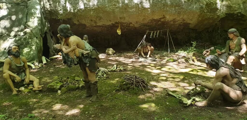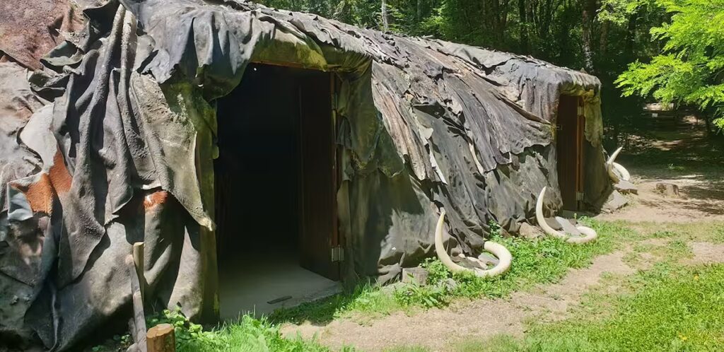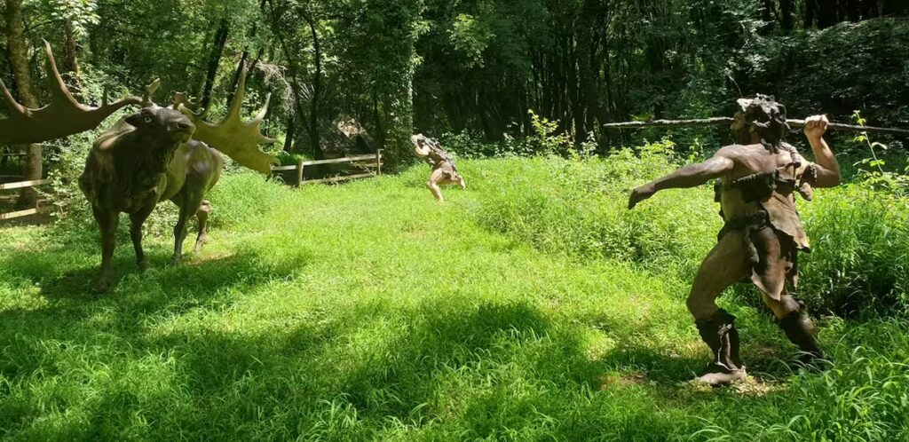 The park’s main attraction is its series of life-sized reconstructions of prehistoric humans and animals, crafted with incredible attention to detail. Walking through the trails, you encounter hunters carrying spears, families gathered around primitive shelters, and realistic scenes of daily life that showcase the ingenuity and resilience of early humans. Alongside these human reconstructions, the park features models of prehistoric fauna, from mammoths and saber-toothed cats to giant deer and other Ice Age creatures, allowing visitors to understand the world in which our ancestors lived. Informational panels accompany each scene, explaining the significance of tools, hunting techniques, and the social structures of early human communities, ensuring that every step through the park is both educational and immersive.