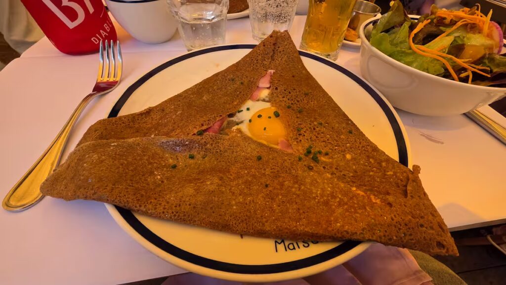 During our weekend in Saint-Malo, we stumbled upon a place that felt both magical and authentic: La Crêperie La Licorne. Located right on the vibrant Place Chateaubriand, just steps away from the ramparts and the Château of Saint-Malo, this pastel-colored gem immediately caught our attention. With its charming décor and inviting atmosphere, it was the perfect spot for us to sit down and indulge in one of Brittany’s most beloved culinary traditions: galettes and crêpes.