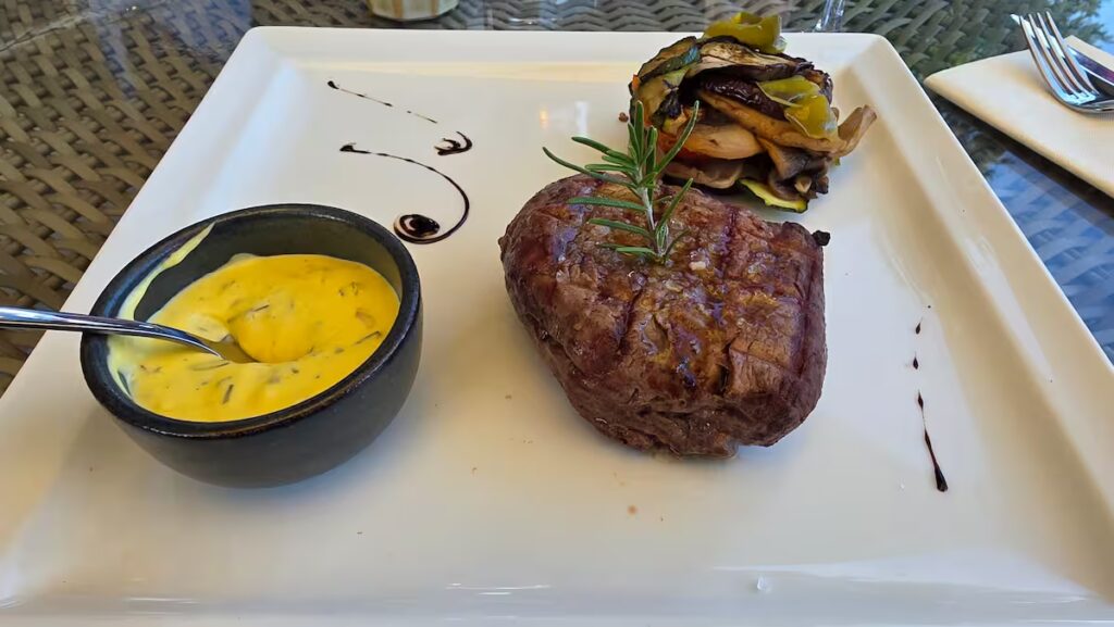 Let me be honest: rarely have I been so impressed by a sauce. I had the filet of beef, cooked to perfection — tender, juicy — but the Béarnaise sauce stole the show. Rich, creamy, full of flavor… the kind of sauce you want to mop up with bread until the plate is clean.