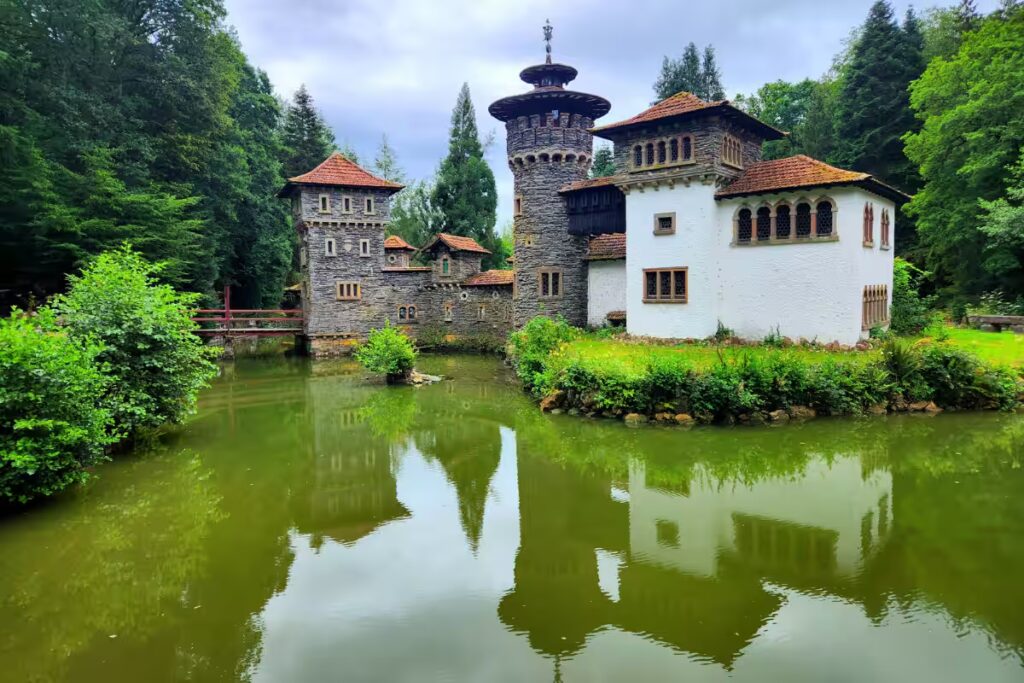 Nestled in a small valley near the village of Wahl, this castle is almost hidden behind trees and hills. Its presence feels secretive, as though it’s only meant to be discovered by those who take the time to wander off the beaten path. The current building, simple and elegant in appearance, was built in the 19th century on the ruins of a medieval fortification. With its turrets, pale facade, and pointed roofs, it resembles more of a grand country house than an imposing castle – which is part of its charm.